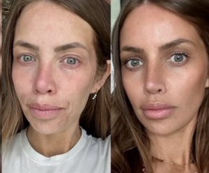 This method was created by our beloved founder at Seint Beauty and works SO WELL. (In the picture above- what a beauty! With and without makeup!)
